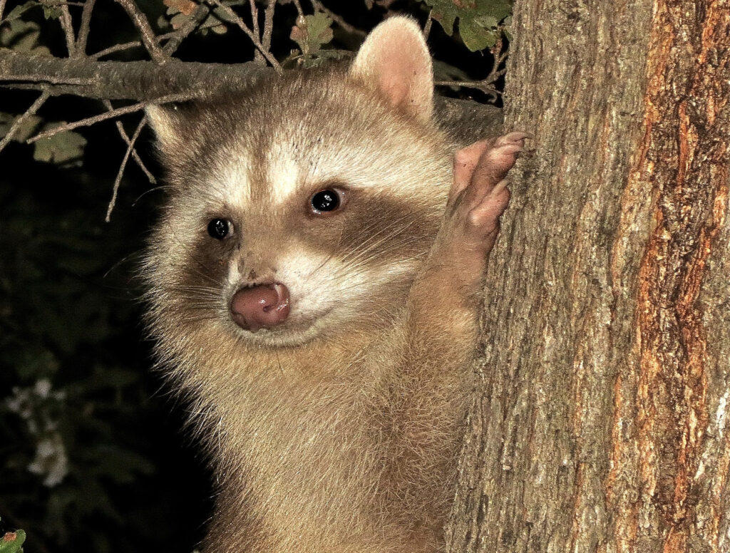 Why the interest in raccoon scat identification? Because possibly hidden in the scat are microscopic eggs of a parasite that is potentially dangerous to humans. Wild animals are often hosts to parasites and raccoons are no exception. One raccoon parasite is a nematode called the raccoon roundworm, or Baylisascaris procyonis. The adult of this roundworm lives in the small intestines of its primary host, the raccoon, which typically shows no symptoms of the infection. The worm is considered present wherever raccoons thrive, and most raccoons in a population are likely infected. A single female worm can release hundreds of thousands of microscopic eggs daily and the raccoon may harbor multiple worms. The eggs are then shed with feces. After a period of two to four weeks, the larvae within the eggs become infectious. With adequate soil moisture, the eggs can survive for years. Wild animals, including birds, rodents, other mammals, including raccoons, and humans become infected by accidentally ingesting infectious eggs. Raccoons and other predators also pick up the worm if they consume an infected rodent or other animal, completing the cycle.