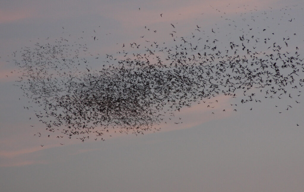 There’s something thrilling about being in the presence of wildlife in huge numbers. A colony of about 250,000 Mexican free-tailed bats call narrow crevices under the Yolo causeway home. To watch clouds of bats fly from their roost at dusk to forage for insects, attend Yolo Basin Foundation’s “Bat Talk and Tour” event. It’s not to be missed. The causeway colony of free-tailed bats might be the largest colony of bats in California. After overwintering in southern California or possibly Mexico, the bats return to the Bypass around March. Starting in late June, females give birth to a single pup. Every night, nursing females leave to eat almost their own weight in moths, beetles, midges, mosquitos, stinkbugs, and other insects using echolocation with high-frequency sounds produced by their larynx. Mother bats reunite with their young by vocalizations and scent. In mid-fall most of the bats head south. They will return to the same roost year after year. ![]() Superlatives come easily for Mexican free-tailed bats. It has been claimed that they have the fastest horizontal speed of any animal, reaching top ground speeds near 100 mph (https://doi.org/10.1098/rsos.160398)! They also fly at altitudes of nearly 11,000 feet, among the highest of all bats, to catch moths. And they are regarded as one of the most abundant mammals in North America. Very large colonies are the norm. Up to 1.5 million bats roost under the Congress Avenue Bridge in Austin, Texas. The largest known colony is in the Bracken Cave, near San Antonio, Texas, with nearly 20 million bats. The Mexican free-tailed bat ranges from the southern U.S. into South America. Until DNA-based methodologies became commonplace, it was long thought there were two main groups of bats. One consisted of the fruit-eating bats, called megabats (although not all are large as the name implies), which don’t echolocate. Megabats include bats like flying foxes with large eyes and an excellent sense of smell. The second group consisted of smaller bats, called microbats, that mostly eat insects they catch on the wing using echolocation. The Mexican free-tailed bat is an example of a microbat. This taxonomic grouping turned out to be incorrect. Genetic evidence in the 2000s clearly showed that some echolocating microbats share a common ancestor with the megabats. As a result, two new groups of bats, Yinpterochiroptera, or the Yin, and Yangochiroptera, or the Yang, were proposed. The megabats and old-world echolocating horseshoe bats, leaf-nosed bats, and a few other microbat species form the Yin group. The Yang group consists of 82% of all echolocating bat species and most microbat families. They are ecologically the most varied and diverse bat group. Most Yang species are insectivorous, but ecological niches and prey preferences vary. Some catch and feed on vertebrates like birds, frogs, and other bats, and some are frugivores (fruit eating). Despite the clear genetic signal of the Yin and the Yang, there was no known anatomical trait that confirmed the new taxonomic scheme, which was based solely on DNA evidence. What physical feature could possibly unite a large, non-echolocating, sight-oriented flying fox with a small bat that hunts insects by echolocation? And what would unite the almost 900 species of the Yang bats? A recent discovery revealed that the anatomy of the inner ear was the key. The inner ear of bats consists of the snail-shaped cochlea lined with sensory hairs cells, which convert vibrations into neural signals. These signals are carried from the ear to the brain by neurons, which in most mammals are surrounded by a bony tube, called the Rosenthal’s canal. This is where the surprising difference between the Yin and the Yang was discovered (Sulser, R., et al. 2022. Nature 602:449-454). The Yin bats, like other mammals (except the echidna and platypus, which are special exceptions), have a Rosenthal’s canal completely covered in bone. But in Yang bats the canal is wall-less. This means there is a larger space for neurons to vary in size, number, and complexity, opening the door for the evolution of greater processing of sound waves and diverse forms of echolocation. It is possible that variations in the canal of Yang bats correspond in some way to the large number of species of Yang bats and their extreme diversity of ecological specializations in behavior, habitats, and diets. Now we know that Yin and Yang bats are separated not by behavior, ecological niche, or feeding preference, but by their evolutionary history, which is supported by the differences in the anatomy of their inner ears. Since the Yin group of bats consists of both echolocating and non-echolocating bats, did echolocating evolve once in the ancestor to all bats, with a subsequent loss in the megabats, or did it evolve twice, once in the Yin and once in the Yang? The question is not fully resolved but one interpretation is that the ancestor to all bats had laryngeal echolocation which was subsequently lost in fruit-eating megabats. The large eyes of flying foxes and relatives likely evolved after the degeneration of echolocation. There is a megabat in the genus Rousettus that uses tongue-clicking to echolocate in caves, but that is unique and evolved independently. Interestingly, porpoises and toothed whales also click to echolocate but in a different manner. They produce clicks by moving air between sinuses in the head. Echolocation has evolved in other groups of animals as well, including oilbirds, swiftlets, dormice, tenrecs, and shrews. Dark caves, underground tunnels, moonless nights, muddy waters, and deep oceans have all been brought into the light! Want to learn more about these amazing mammals and see the largest urban colony in California for yourself? Sign up for Yolo Basin Foundation’s Bat Talk and Tour or one of our special events. |
